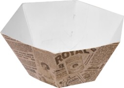 V této sekci může naše produkce nabídnout výrobu jednorázového nádobí. Mezi nejčastější výrobky jsou kornouty na hranolky, papírové misky, papírové krabičky na hamburgery, obaly na tortily, kapsy na hranolky, obaly na wafle, kornouty na trdelníky apod. Veškeré produkty je možné dodávat i s privátním potiskem zákazníka a to maximální kvalitě tisku a již od 10 000 kusů.